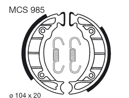 Saboți frână TRW MOTO MCS985. Poziție de montare: Spate. Diametru: 104.0 mm. Lățime: 20.0 mm