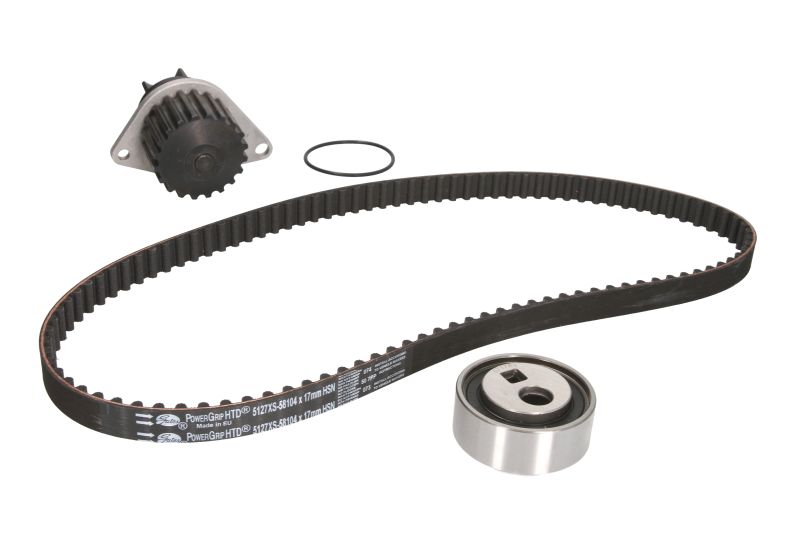 Set de distributie (curea + intinzator + pompa de apa) se potrivește: CITROEN AX, BERLINGO, BERLINGO/MINIVAN, BX, C15, C15/MINIVAN, SAXO, ZX; PEUGEOT 106 I, 106 I/HATCHBACK 1.0/1.1/1.3 10.82-05.08