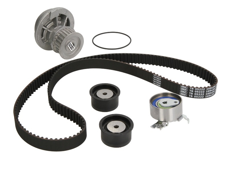 Set de distributie (curea + intinzator + pompa de apa) se potrivește: CHEVROLET EPICA, EVANDA, LACETTI, NUBIRA, REZZO, ZAFIRA; DAEWOO EVANDA, LACETTI, LEGANZA, NUBIRA 1.8/1.8LPG/2.0 08.92-
